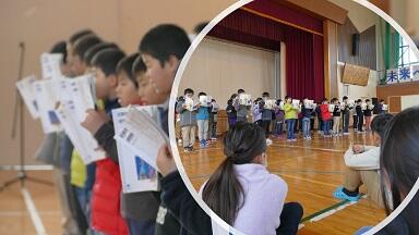 2月25日(火)今年度最後の音読朝会では,3年生が「モチモチの木」を音読しました。よい姿勢で教科書を持ち,表現豊かに音読していたので,他の学年の子どもたちは,物語に引き込まれていくように聴き,じさまを助けたいという豆太の気持ちまでも想像していました。