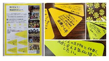 面瀬小学校の4年生から6年生が参加し,一人一人みんなの想いを黄色の花びらに書きました。これまで学習を積み重ねてきたことで深まった心情が分かるようなメッセージが書かれていました。