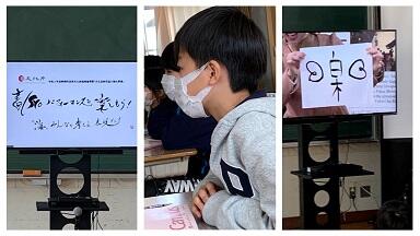 いつもの書写ではなく「楽」を楽しそうに書く,「笑」を笑っているように書くなど,表現を楽しみながら,書の楽しさを教えてもらいました。次回のプログラムも楽しみです。