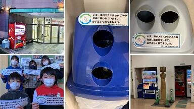 5年生が海のプラスチックごみについて学び,海への流入を減らす取り組みを始め,その一つとして自販機用呼びかけステッカーを作成しました。市の関係課職員の方々にも心にとめていただき,気仙沼市役所のワン・テンビル1階入口,2階ロビーの自動販売機のゴミ箱に貼っていただいています。皆さんも見つけてみて下さい。
