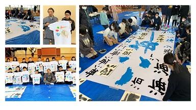 3月22日に,5年生が書家の吉川壽一先生と書/syo パフォーマンス事業で海をテーマに書の楽しさを味わいました。