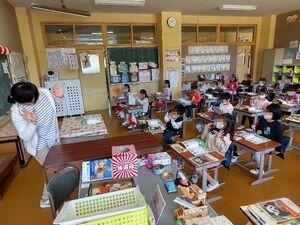 6年生は,学校行事や学校のキャラクター「おもしん」などの学校紹介,計画委員は学校にかかわる○×クイズでおもてなしをしました。