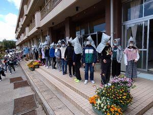 6年生は,しっかり手を振って,膝を高く上げて行進していました。その姿を見て下級生が真似する,とても良い関係性ができています。プラカード,旗の保持者など役割をもつ子供たちは先週から業前に練習をしていました。初めてなのにスムーズに移動ができたのは,そういった事前の準備があったからなのだと思いました。