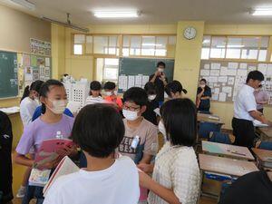 早速,授業が始まりました。夏休みの思い出を発表し合ったり,算数の問題を子供同士で相談し合ったり,生き生きと過ごす姿が見られ,安心しました(テストをやっている学級もありましたが,みんな頑張っていました!)。夏休み中には,子供たちが安全に過ごせるよう,御家族の皆様の御協力をいただきました。本当にありがとうございました。子供たちとまた楽しい学校を作っていきたいと思いますので,今後とも御支援をどうぞよろしくお願いいたします。