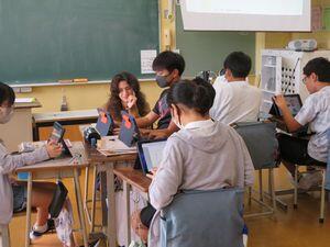 1月24日金曜日,6年生は2回目の波照間小中学校とのオンライン交流会を行いました。グループに分かれて,そして同じメンバーでの交流なので,すぐに仲良くいろいろなことをおしゃべりしている様子が見られました。気仙沼ではサメ肉を使った給食が出されることを伝えたり,気仙沼と波照間のキャラクターを紹介し合ったり,みんな笑顔いっぱいでした。波照間小中の運動会では「エイサー(沖縄の伝統的な踊り)」を行ったそうで,使用した太鼓を実際に見せてもらうだけでなく,音も聞かせてもらいました。