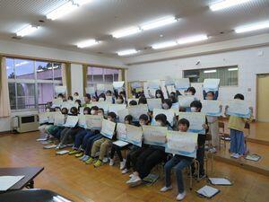 3月4日火曜日,6年生を送る会が行われました。最初に委員会の引継ぎが行われ,その後5年生が作ったくす玉を割りました。きれいに割れて大喝采!!各学年からの出し物は,それぞれの思いがこもったものでした。歌やダンスをプレゼントしたり,6年生と対決したり・・。6年生と一緒に踊る学年もあり,笑顔いっぱいの本当に楽しい会となりました。6年生からは,ダンスや出し物の他に卒業式で歌う曲を聴かせてもらいました!