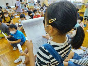 2年生の演目は「アイウエオリババ」という劇です。今日は全員でキャストを決めるためのオーディションをしていたようです。