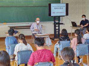 5校時,6年生は小野寺憲雄さんを講師に迎え,尾崎の歴史について学びました。憲雄さんは長い間,本校4年生のワカメの養殖体験を支えてくださった方で,6年生も2年前にお世話になっています。