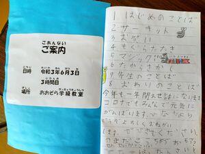 心のこもった招待状を私以外にも届けていたようで,今日はスペシャルなゲスト,谷山前校長先生にもお出でいただきました。子供たちは大喜びでした。