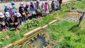 たくさんの「見つけたよ」があったため,なかなかオモトープにたどり着きませんでしたが,水面を泳いでいるメダカを見つけて歓声があがりました。