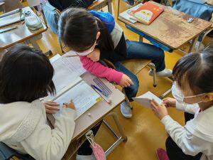 子どもたちの筆が止まっているのを感じたC先生は,グループでの話し合いを入れて情報交換を促しました。