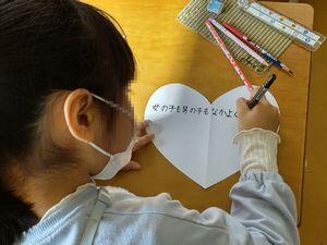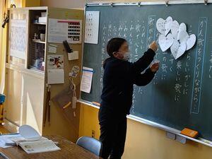 取り上げた題材は「3くみ 大すき」で,より良い学校生活,充実した集団生活について考えさせるものです。資料に即した学習のあとN先生は「このメンバーで過ごすのもあと二週間になりました。このクラスの良いところをこのハートに書いてみんなで確確認しましょう。」と切り出しました。