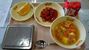 ごはん チリコンカーン マカロニスープ 河内晩柑 牛乳