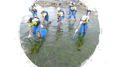 イソギンチャクがなぜか見られませんでしたが、再生したアマモ場が広がっていました。子どもたちは、その中を泳ぐ魚たちを夢中になって追っかけていました。