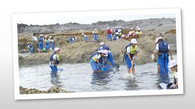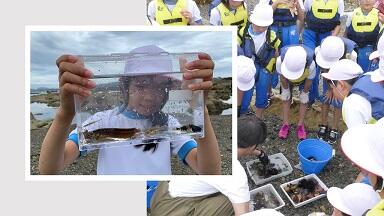 ヤドカリや小さな魚がいっぱいいたほか、イカの赤ちゃんやタコまで見つけました。ピンクの模様のあるクラゲやアメフラシなど多様な種類の生き物がいることが分かりました。