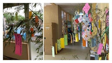 7月7日(火),七夕飾りが校内のあちらこちらに飾られていました。