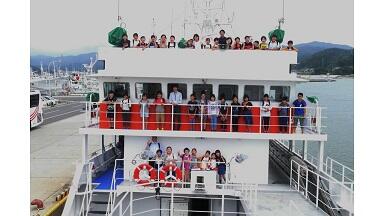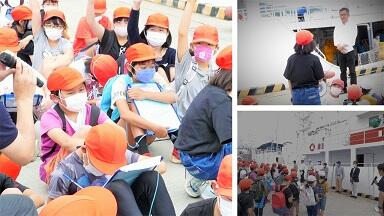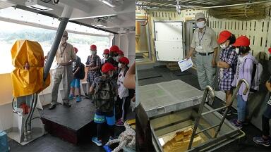 4グループに分かれて,元マグロ船の乗組員の方から船内を案内していただきました。投縄では,100㎞以上も浮きをつけながらロープを流すことや,魚が船倉いっぱいになると3億円以上の水揚げになること,海水が出る蛇口がたくさんあることなどの説明に驚いていました。