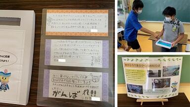 7月28日(火)の全校集会で,児童会の子どもたちが,九州地方を襲った豪雨で被災した大牟田市への支援を呼びかけました。本校は,東日本大震災の際に,大牟田市立明治小学校から支援を受け,平成30年度にはサスティナブルスクールのつながりで大牟田市立吉野小学校の教頭先生が視察に来ています。大牟田市と気仙沼市はESDで深いつながりがあることから,今回の支援となりました。ふれあい委員会のメンバーは各クラスを回って募金を呼びかけたり,全校でメッセージを書いたりしました。思いが伝わると良いですね。