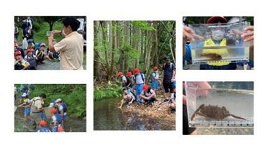 その後ある程度水量のある上流部で,川に入り,生き物探しをしました。採集した生き物を見ながら,生き物が食べる物と川の環境の関係について,棟方先生から解説をしていただきました。改めて面瀬川の環境が豊かであることを知ることができました。