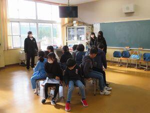 また,5年生は6月17日(火)に八瀬森の学校の田村様より,山の働きと森川海のつながりについて御講話をいただきました。子供たちは,お話を聞くことで,5月に行った岩井崎での生き物調査と昨年度までの面瀬川での生き物調査活動とを結び付け,森と海をつなぐ面瀬川の大切な役割に気付くことができました。