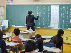 3校時,C先生の姿は5年1組の教室にありました。先輩教師の授業参観をして学ぶためです。家庭科「生活を支えるお金と物」という学習です。C先生の隣で授業をご覧になっているのは,初任研拠点校指導員のK先生です。週1回金曜日にC先生の指導にいらっしゃいます。この後,5校時はK先生から,2校時の国語のこと,参観した家庭科のこと等について講義を受けます。たくさん学ぶことがあって大変ですが,C先生は頑張っていますので,これからも変わらぬ応援よろしくお願いします。