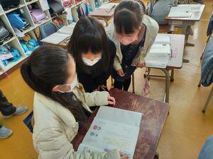 6年生は社会科で「長く続いた戦争」という単元の学習をしました。今日は単元の導入の部分で,広島の原爆のことをきっかけにして課題づくりをしました。資料を指さして確認させたり,小グループで練習させたりなどの工夫が見られました。