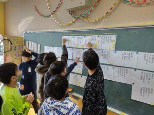 久しぶりに校舎に響く子どもたちの誘われて1校時に校舎を回りました。各教室では先生が書いたウェルカムメッセージの前で,宿題や提出物を集めたり,冬休みの出来事を発表し合ったりする子どもたちの姿が見られて嬉しくなりました。
