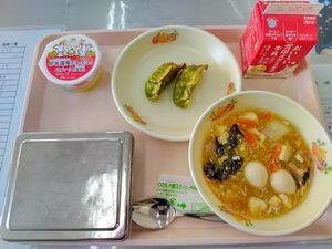 今日の給食の「塩ワンタンスープ」には,宮城県産のお米から作られた米粉ワンタンを使っています。米粉ワンタンは,もちっとした食感でコシがあるのが特徴です。いつものワンタンとの食感の違いを楽しみながら食べましょう。