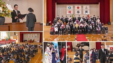 令和2年3月19日。雲一つない青空の下,令和元年度卒業式を挙行しました。