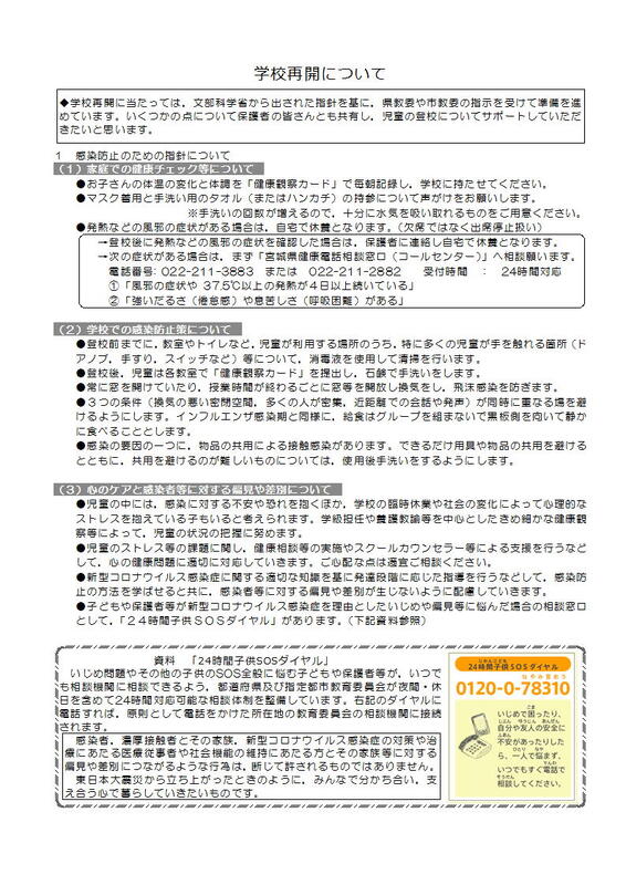 子供向けのマスクは,いまだ手に入りにくく,学校の備蓄用も減ってきています。本格的に学校を再開するにあたり,御支援いただけたこと,そして,何より,子供たちを心配してくださるお気持ちに感謝申し上げます。