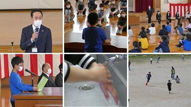 学校再開に向け,登下校の練習が大きなねらいです。学校や交通指導隊の見守りの下で,初めて歩いて登校しました。教室に入るとしっかり手洗いをして,先生の話を真剣に聴いていました。