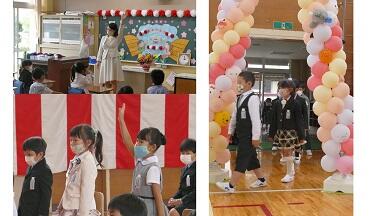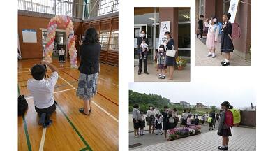 6月4日(木)は,入学式でした。受付に検温の結果を提出し,会場には,3密にならないように,児童一人につき,保護者1名の参加です。両親や家族と登校したお家では,入学式の看板の前や,バルーンの前で記念撮影をしていました。