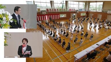 校長先生や令和元年度PTA会長の千葉さんのお話をしっかりを聴き,問いかけに元気に応えていました。