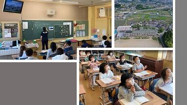 6月8日(月),3年生は,社会科で学校の周りの様子をドローンの動画映像で学習しました。東西南北にどんなものかあるのか確認しました。自分の家や,三陸道,海や中学校などを興味深そうに見入っていました。