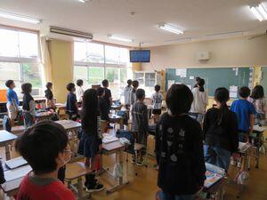 5月2日金曜日,全校で「地震発生対応避難訓練」を行いました。第一次避難場所は校庭。その後,津波警報が発令されるという想定で,高台の駐車場をお借りして設置している第二次避難場所に,全校児童と全職員が避難しました。本校のよさでもあるのですが,全員が真剣に取り組むことができました。入学して1か月の1年生も黙って一生懸命取り組んでいました。本当にすばらしいです!自分の命は自分で守ることができるよう,今後も訓練を続けていきたいと思います。
