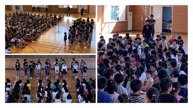 本物の牡蠣を使った講話に,子どもたちは目を輝かせながら聞き入っていました。お話を通して,川の環境を守る大切さに気付くことができました。
