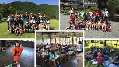 遠足日和の晴天の下で,子どもたちは活動を楽しみ