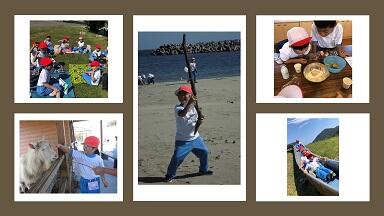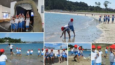 大島では,貝殻拾いやビーチフラッグなど充実した1日に