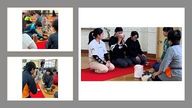 「お手前ちょうだいいたします。」「お服加減はいかがでしょうか。」等,普段使い慣れない言葉を少し照れながらもお互いに掛け合い,和やかな雰囲気で茶会が進みました。