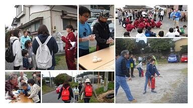 11月3日に気仙沼市総合防災訓練に合わせて,面瀬地区総合防災訓練が行われました。面瀬小学校と面瀬中学校で実施していた昨年までの登校時避難訓練を自治会と合同で行ったものです。全校児童生徒と保護者が参加しました。