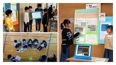 次に,面瀬小学校が進めているESDや総合的な学習等の取り組みについて,パワーポイントや写真を使って紹介しました。面瀬小の子どもたちは,様々な体験や探究活動を通して,ふるさとの良さに気づくとともに,環境問題についても考えて行こうとしています。