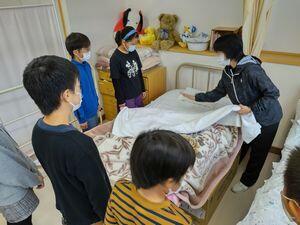 明日はいよいよ面フェスの本番ですが,5年生は10月21,22日と花山での野外活動を控えています。昨日はキャンプファイヤーの練習をしていましたし,今日の6校時も全体指導の予定です。業間はシーツ係が集まって,ベッドメーキングについて研修しました。