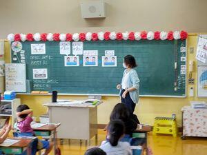 2校時,1年2組は算数の学習に取り組んでいました。問題は「女の子が3匹,男の子が2匹の金魚を水槽に入れました。金魚は合わせて何匹ですか。」です。