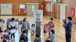 6年生は,学校行事や学校のキャラクター「おもしん」などの学校紹介,計画委員は学校にかかわる○×クイズでおもてなしをしました。