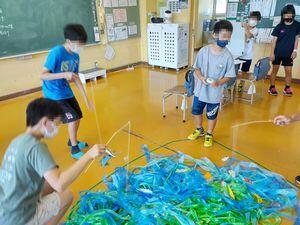 出されたお店は3つ。「釣り」「射的」「ボウリング」です。話し合いで,盛り上げるための工夫として挙げられていた「海藻を入れる」はこのことだったのですね。魚がスズランテープに隠れて大物を釣るのは難しかったです。