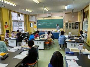2校時,校舎を巡視していると,理科室から子供たちの声が聞こえました。覗いてみるとS先生が授業をしていました。S先生は4,5,6年生の理科の教科担任として学習を進めています。