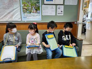 5校時,校長室に可愛いお客様が来ました。1年生の生活科の「学校にいる人と仲良くなろう」の勉強です。