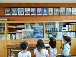 歴代の校長先生の写真の気付いたグループもありました。校長室には珍しいものがたくさんありますよ。今度は探検に来てくださいね。