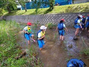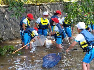 上流で河川の護岸工事などを行っていて水が濁っていたため生き物が捕れるか心配でしたが,たくさんの生き物を見ることができました。