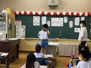先日紹介した1年1組の「みんなに はなそう」の学習は,見つけたものについてのクイズが完成し,そのお披露目を行いました。今日の3校時,前回の続きの授業を参観しました。